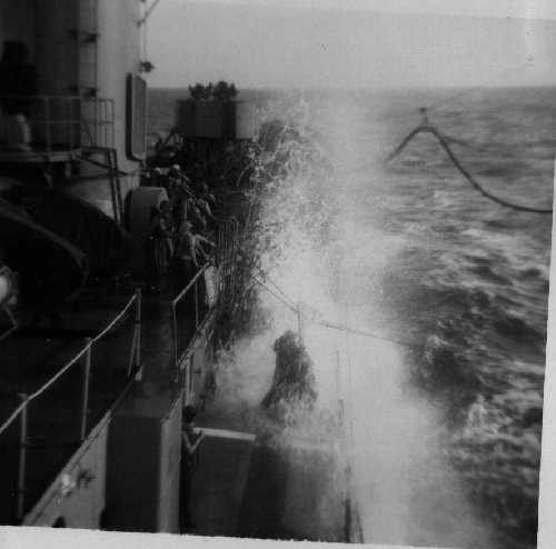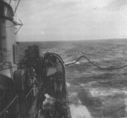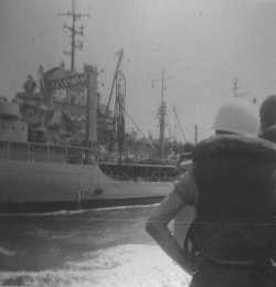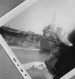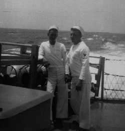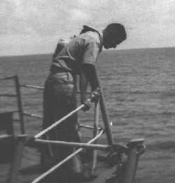 ![]() Arnold Anger on after steering watch. ![]() Walter T. Adams, FT3, carries the coffee pot out of the FT shack. |