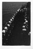 We are grateful to William Tolar, son of Thomas S. Tolar, LTjg 1945-1946, for finding these photos in family memorabilia in 2005, and sharing them with us. Ltjg Thomas Tolar is 7th from the left in the photo (#15) of the officers. Carl Lloyd (RM3 45-46) has recognized that most of the Tolar photos were likely taken at Pensacola in August 1945 where the change of command (Copeman to Parsons) took place. Gearing in its first year also visited Boston, Norfolk, Casco Bay and GTMO. The aircraft carrier in photo #19 is USS Ranger CV-4, which had a distinguished war record in the Atlantic Fleet and was decommissioned in October of 1946. Help is needed to identify the Gearing sailors in these photos. It is likely that most of them are plankowners. We will add captions to the photos as we learn the details. Email this web page editor, Don Provost donprov@optonline.net, with all the information you have! Mention each photo by its number. Photos #2, #3, #4, #5, #9, #13 #14, #15 and #18 have been updated with some names, thanks to Warren Groeneman (SOM2 45-46), Carl Lloyd (RM3 45-46), Dominick Giampietro (MM1 44-46) Art Jackson (RD2 45) and Fred Burkett (BKR2 45) and Ron Stephens, son of Benjamin Henry Stephens (S2c SK 45) and David Sullivan, son of Raymond John Sullivan (S2c 45). |